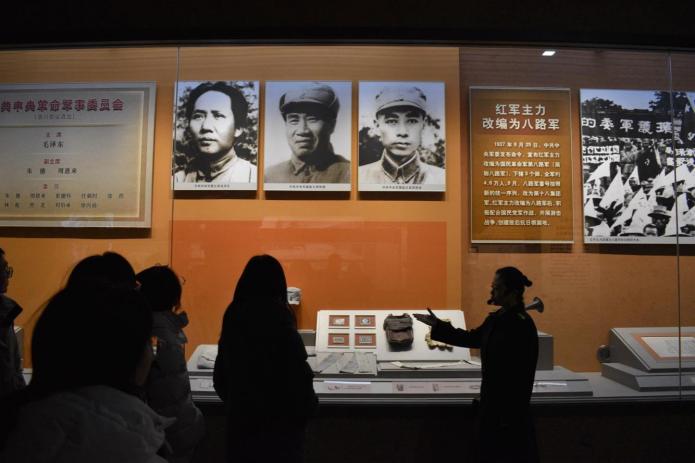 最后,同学们来到了位于武乡县太行街中心的八路军太行纪念馆。馆内珍藏了大量革命文物和资料。在讲解员的带领下,同学们仔细聆听了革命先辈们的英雄事迹,感受到革命文物中传递的时代脉搏。朱悦锋同学说:“馆内展出的抗战时期在根据地发行的各类文艺刊物原件,让我们得以亲眼见证前辈学人们在抗战时期为文艺事业和革命事业所付出的艰苦卓绝的努力,提醒着我们今天应该以更加坚定和诚恳的态度对待文艺研究工作,把这条贯穿历史的红色文脉继续传承下去。”