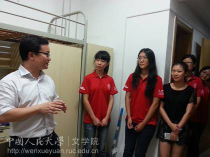 的一份子,对同学们来到人大表示热烈欢迎。随后,朱副院长逐层参观了学生宿舍,询问了同学们生活的相关细节,表示在生活上会尽力为同学们提供帮助。在看望同学的同时,朱副院长也特别指出,对于汉教专业这种延伸办学方式,本部会不断派出优秀的老师以多种形式为大家授课、讲学,并且邀请国内外权威的专家学者为同学们做讲座,希望同学们用好资源,努力学习专业知识。
