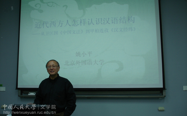 姚教授以语言发展史中两个具有重大意义的设问开始了他的讲座,也开启了大家的思考:西方语言学给中国带来了什么?中国语言文字给西方带去了什么?接着他从语法和语言教育角度对两个问题给出了简要的回答。