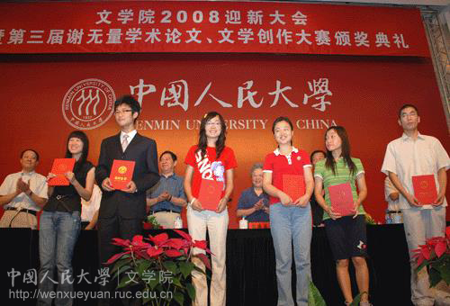迎新大会结束后,谢无量大赛颁奖仪式继续在会场进行。姚丹老师、陈奇佳老师分别为论文类、创作类作品作出了精彩点评。他们都认为:本届谢无量大赛参赛作品较往届展示出了更独到的视角,更高超的水平。共有24名同学获得了本次大赛奖项,其中论文类预测创作类奖项各占一半。论文类二等奖获得者韩俊与创作类一等奖得主朱基钗(06本)分别发表获奖感言,他们的感言真诚坦率,幽默睿智,使在场新同学直接分享了一份信念和热情。最后,谢德晶女士与韩国成人电影 领导共同为获奖同学颁奖。