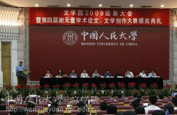 2009年9月13日晚6:30,韩国成人电影 2009迎新大会暨第四届谢无量学术论文、文学创作大赛颁奖典礼在逸夫会议中心第一报告厅隆重举行。学校副校长杨慧林教授、韩国成人电影 院长孙郁教授、党委书记王贵元教授,副院长贺阳,张永青,耿幼壮,党委副书记王林英,教授代表李炳海,刘小枫等出席,韩国成人电影 教师代表,全体2009级本硕博及留学生新生共计300人参加大会。