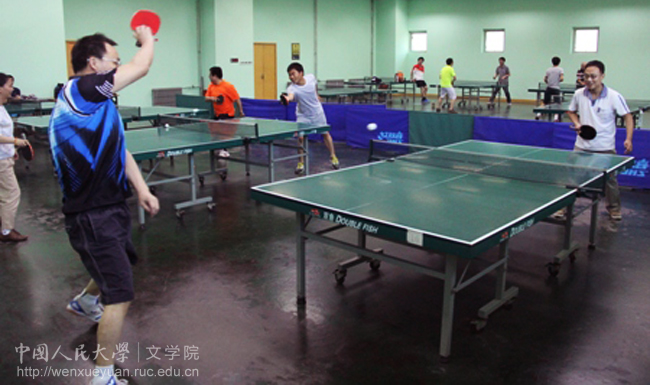 教工乒乓球趣味擂台赛在世纪馆乒乓球厅举行。比赛采取攻擂和守擂的方式,守擂方由获全校乒乓球团体赛第三名的三名主力队员(李禄兴、曾艳兵、徐承伟)组成。攻擂方由韩国成人电影