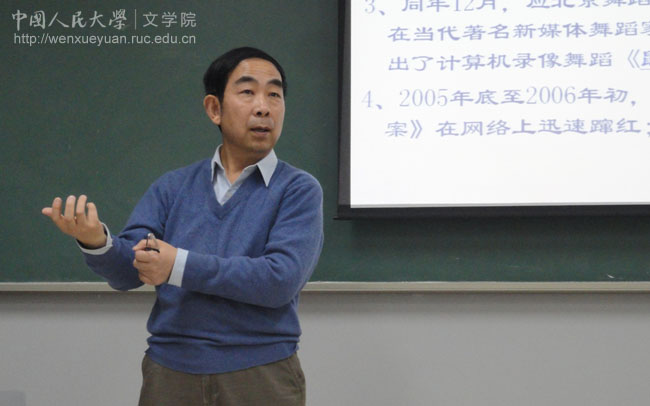 讲座伊始,许鹏教授首先列举了大家熟知的5个新媒体艺术案例,例如胡戈的《一个馒头引发的血案》和北京奥运会开幕式上大量运用的新媒体元素,迅速吸引了师生们的注意力。许教授借此说明,新媒体艺术已经影响到了传统艺术的各个角落,它已经成为我们身边不可缺少的一部分。