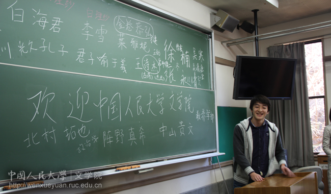 14点50分,访日团旁听了刈间文俊教授的“中国电影”课程。刈间文俊教授主要讲授中、日、韩三国电影之间的区别与联系,从流行文化研究切入至各个文化的内在气质,并穿插各国电影的代表性片段,演绎生动,引人深思。