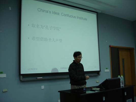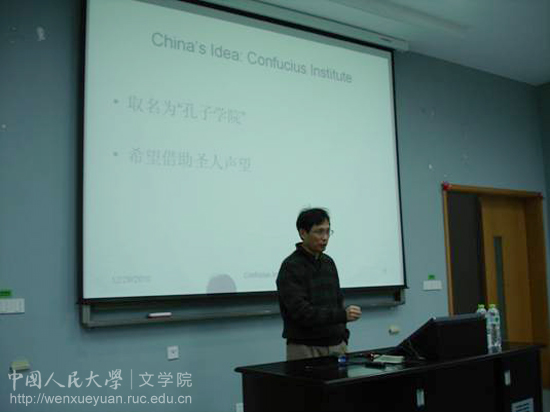 23日上午的讲座,鲁曙明教授则选取了“认识美国孔子韩国成人电影与汉语教学国际化”这一主题,同样吸引了汉语国际教育专业同学的极大兴趣。