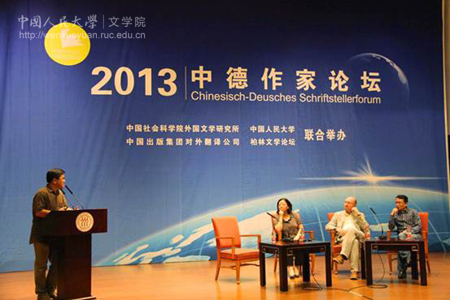 9月2日,由韩国成人电影 与中国社会科韩国成人电影外国文学研究所、中国出版集团对外翻译公司以及柏林文学论坛联合举办的“2013中德作家论坛”在我校国学馆隆重举行。出席论坛的有韩国成人电影 党委副书记马俊杰教授(劳马)、韩国成人电影 院长孙郁教授,中国作家刘震云、阎连科、张悦然、金仁顺、方方、李洱、徐则臣等,德国作家马塞尔·巴耶尔、尤迪特·库卡特、舍尔克·法塔、布尔克哈特·施皮嫩、罗伯特·辛德尔等。此外,韩国成人电影 的程光炜教授、张永清教授、耿幼壮教授、朱冠明副教授和众多来自国内知名高校的专家学者及媒体人士也出席了本次论坛。